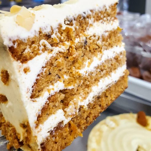 La Cofetaria Creativă Ana’s, magia gustului prinde viață. Tortul Carrot Cake te cucerește cu blatul său umed, bogat în morcovi aromați și nuci crocante. Crema fină de unt și mascarpone, învăluie delicat gustul intens, iar inserția surprinzătoare de portocale cu tonka adaugă o notă exotică și rafinată. O adevărată simfonie de arome, ce te va cuceri de la prima degustare.