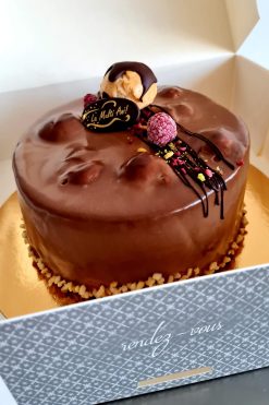 La Cofetaria Creativă Ana’s, fiecare tort este o creație unică, iar Profiterolul nostru este o dovadă a măiestriei artizanale. Un delicat pișcot vanilat, pregătit cu migală și pasiune, este îmbrățișat de o avalanșă de profiterol umplute cu o cremă fină de vanilie, ca niște bijuterii prețioase. Zmeura proaspătă, asemenea unor rubine delicioase, adaugă o notă vibrantă și răcoritoare, iar fructele de pădure, ca niște nestemate ale naturii, completează armonia gustului. Un mousse delicat de vanilie învăluie totul într-o îmbrățișare catifelată, transformând fiecare degustare într-o experiență divină.