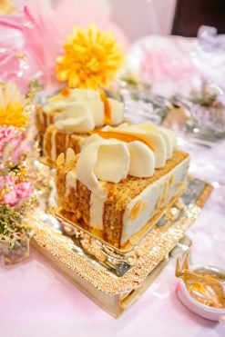 La Cofetaria Creativă Ana’s, magia gustului prinde viață. Tortul Carrot Cake te cucerește cu blatul său umed, bogat în morcovi aromați și nuci crocante. Crema fină de unt și mascarpone, învăluie delicat gustul intens, iar inserția surprinzătoare de portocale cu tonka adaugă o notă exotică și rafinată. O adevărată simfonie de arome, ce te va cuceri de la prima degustare.